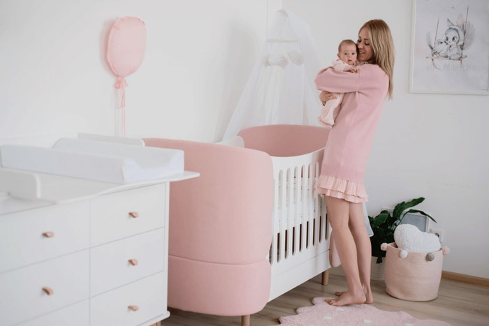 می توانید تخت کودک را مدل تخت کنار مادر انتخاب کنید و کودک را کنار خود قرار دهید.